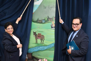Se inauguró también en esta unidad académica el mural “Paisaje lingüístico interactivo de lenguas originarias”, realizado por alumnos de la Facultad de Artes Plásticas y Audiovisuales, el cual visibiliza a las voces nativas desde la cotidianidad de las acciones con gente trabajando, compartiendo comida y conviviendo.