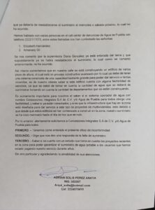 “En enero, unos vecinos fueron a las oficinas de Agua de Puebla, y solicitaron corroborar si no era problema de nuestras tuberías y/o flotadores. Enviaron a una persona de nombre Ricardo que revisó un par de cisternas de la calle y estaban bien, llenó una lista con los nombres de los vecinos afectados, tomó fotos para “hacer presión” en un chat que tienen con todo el personal técnico y administrativo.