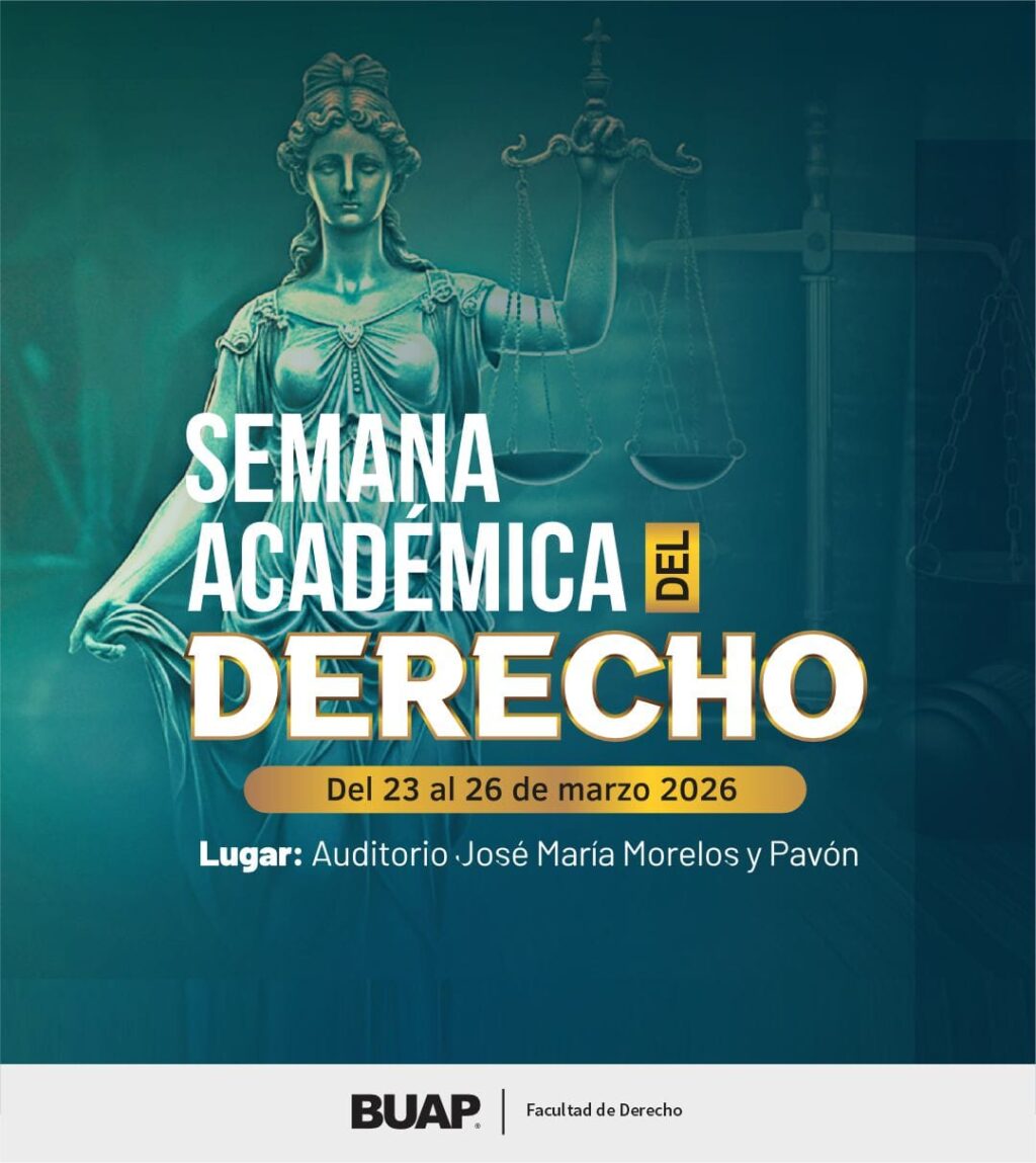 Del 23 al 26 de marzo, la BUAP tendrá la Semana Académica del Derecho en el Auditorio José María Morelos y Pavón.