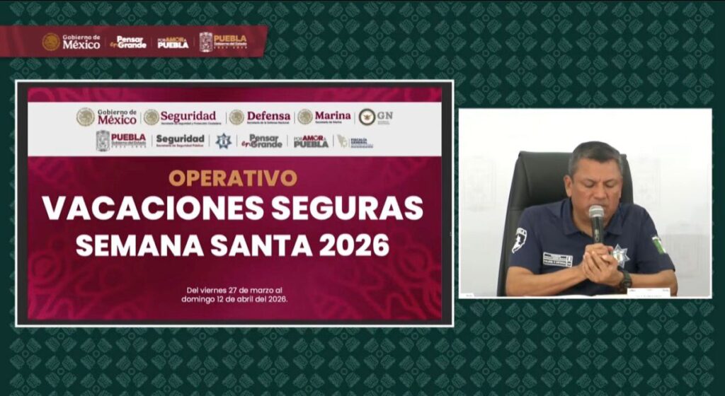 La secretaría de Seguridad Pública (SSP) de Puebla anunció el operativo “Vacaciones Seguras Semana Santa 2026” del 27 de marzo al 12 de abril de 2026.
