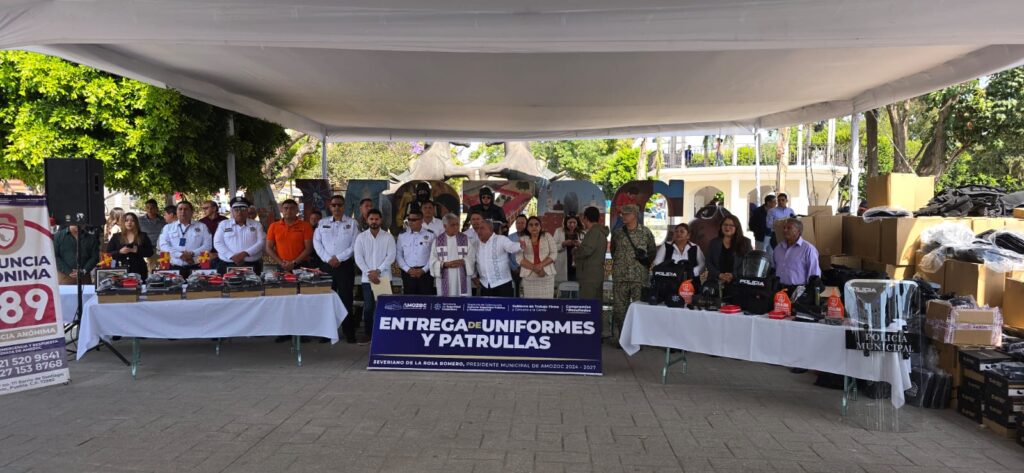 El presidente municipal de Amozoc, Severiano de la Rosa Romero, entregó uniformes, reconocimientos y tres patrullas para reforzar la seguridad de los ciudadanos.