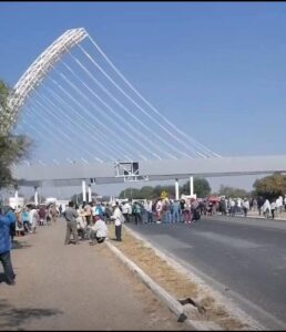 Vecinos de Altepexi, molestos por problemas del agua, protestaton de forma pacífica a la altura del arco de seguridad, sobre la carretera estatal Tehuacán – Teotitlán.