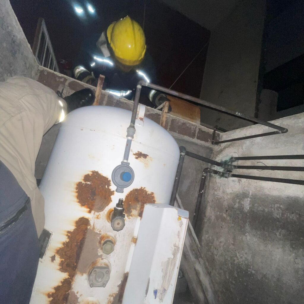 PC identificó un tanque estacionario de 300 kilogramos con daño en la línea de suministro hacia el regulador, lo que generó la fuga.