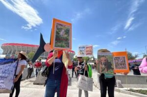 En las inmediaciones del Estadio Azteca, reciento que reabre sus puertas para el partido de México contra Portugal, la pasión por el futbol no solo se hace presente, también manifestantes motivados por diversas causas, como el caso de Refugio Franciscano, el conflicto en Palestina y la gentrificación.
