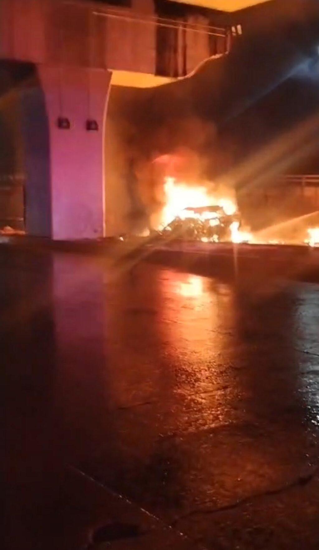 De acuerdo con los primeros reportes, la unidad oficial número 2150 circulaba con dirección hacia la zona de los estadios y, presuntamente, el conductor perdió el control del vehículo y se impactó contra la estructura del segundo piso, lo que provocó que la patrulla se incendiara de manera inmediata.