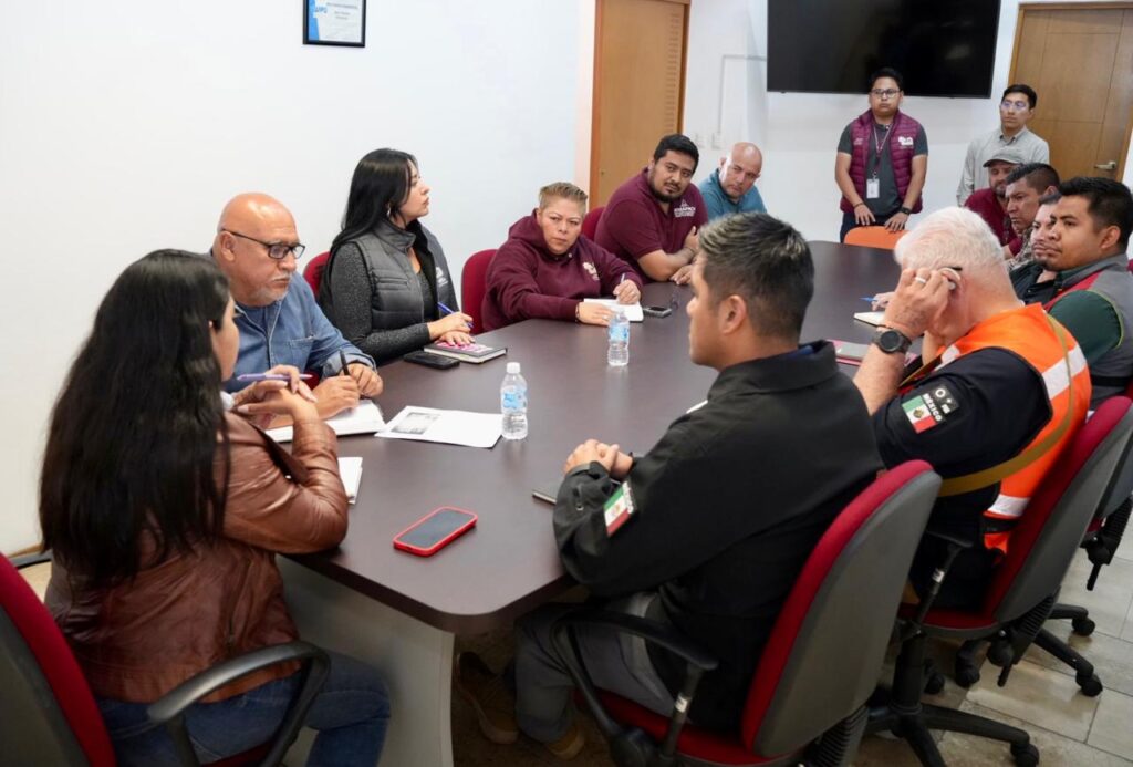 En este marco, la presidenta municipal encabezó una mesa de trabajo con las secretarías de Gobernación, Seguridad Ciudadana y Desarrollo Urbano, así como con las direcciones de Obra Pública, Ecología y Medio Ambiente, Servicios Públicos, Protección Civil, Atención Ciudadana y Comunicación Social, además de los organismos de Limpia y SOSAPACH.