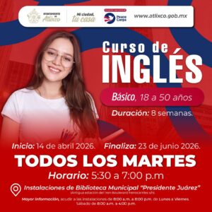 • Curso de inglés básico: inicia el 14 de abril, con clases todos los martes.