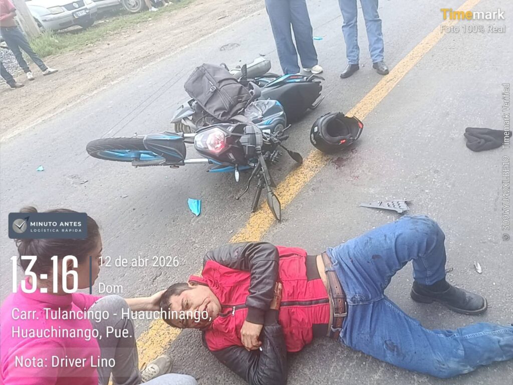Reportan choque de camioneta y un motociclista a la altura de la entrada a la Central de Autobuses de Huauchinango, sobre la carretera federal México Tuxpan.